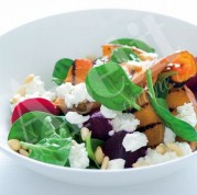 75g ovčího sýra, 125g zeleniny (jarní cibulka, ledový salát, kedlubna)